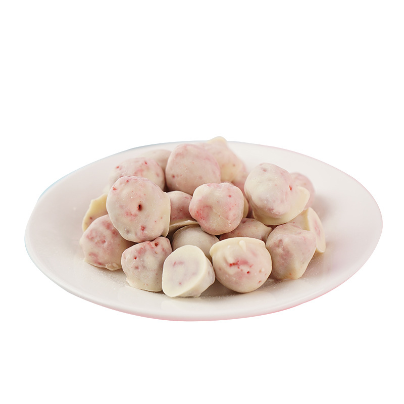 4. Chocolate blanco recubierto de sedoso, fresa dulce y agria.